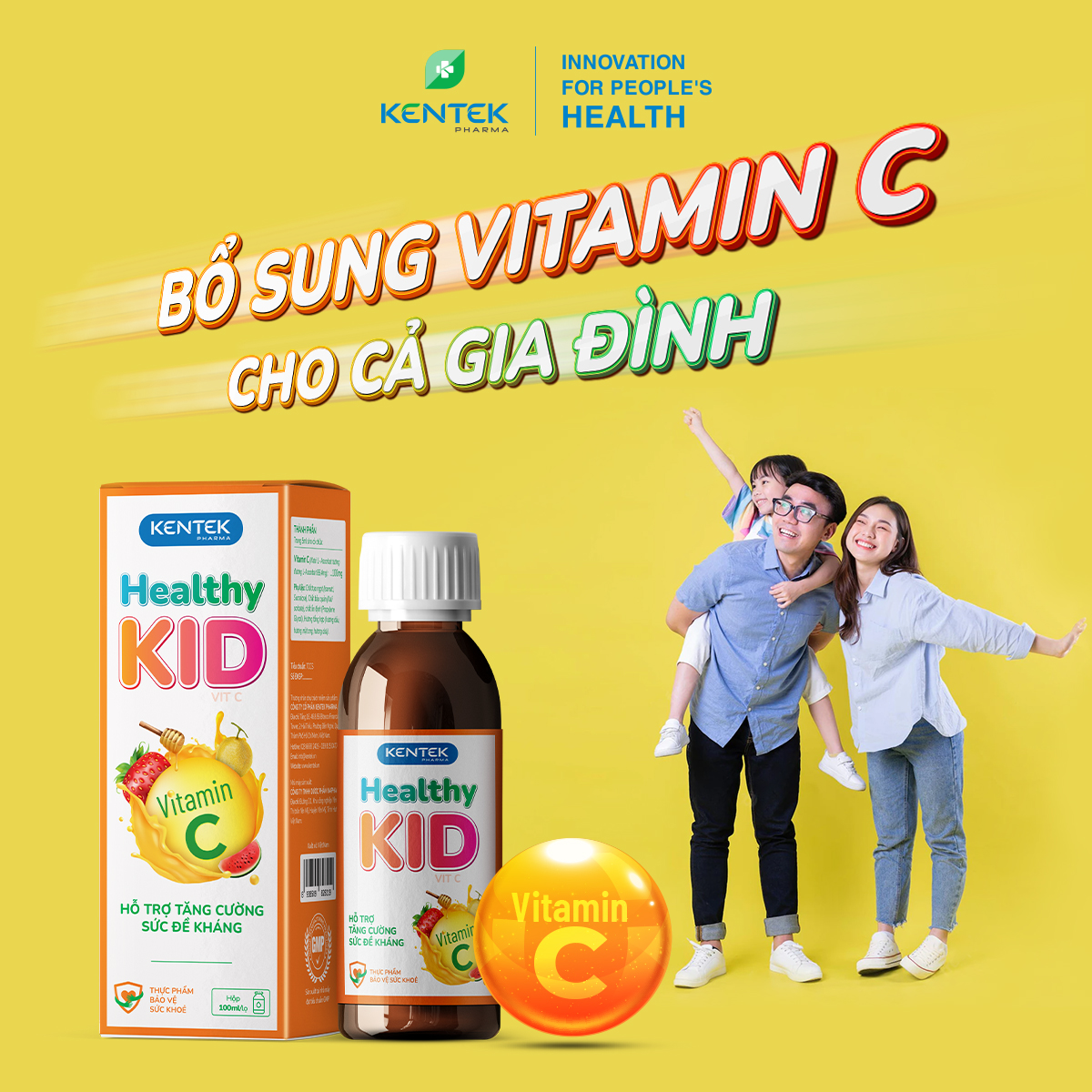 ✨Siro vitamin C bổ sung đề kháng, dành cho trẻ em HEALTHY KID VIT C | Kentek Pharma | Chai 100ml