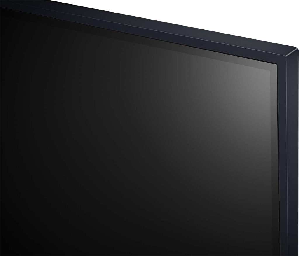 Thiết kế - Khi đặt tivi LG trên bất kì bề mặt nào, bạn cũng không lo rung lắc nhờ có hai chân đế nhựa lõi kim loại hình chữ V ngược nâng đỡ bên dưới. - Thiết kế
