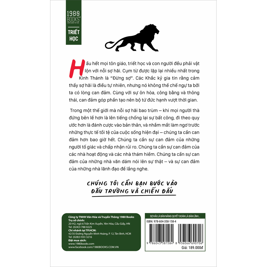 Trong cuốn sách“Sợ hãi là bản năng - Quyết đoán là bản lĩnh - Can đảm là tôi luyện”, Ryan Holiday đã phá vỡ các yếu tố của sự sợ hãi, biểu hiện của sự hèn nhát, các yếu tố của lòng dũng cảm, biểu hiện của sự can đảm và cuối cùng là yếu tố của chủ nghĩa anh hùng, biểu hiện của lòng dũng cảm. Thông qua những câu chuyện hấp dẫn về các nhà lãnh đạo lịch sử và đương đại, Holiday chỉ cho bạn cách chinh phục nỗi sợ hãi và rèn luyện lòng can đảm trong cuộc sống hằng ngày.