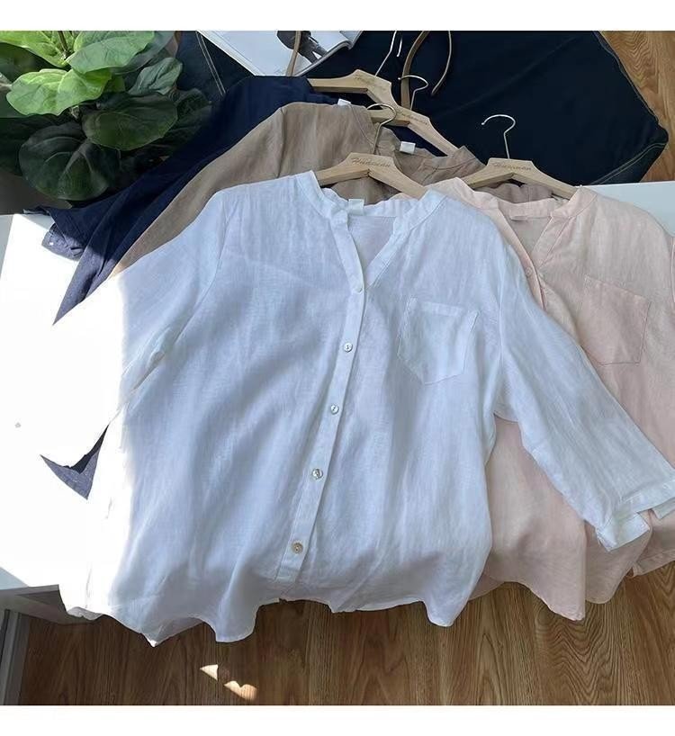Áo sơ mi nữ Linen tay dài, không túi LA MỘC - LM0122306 - Sơ mi trắng với thiết kế cơ bản và dễ mặc. Điểm nhấn là phần xẻ tay tạo có thể thả