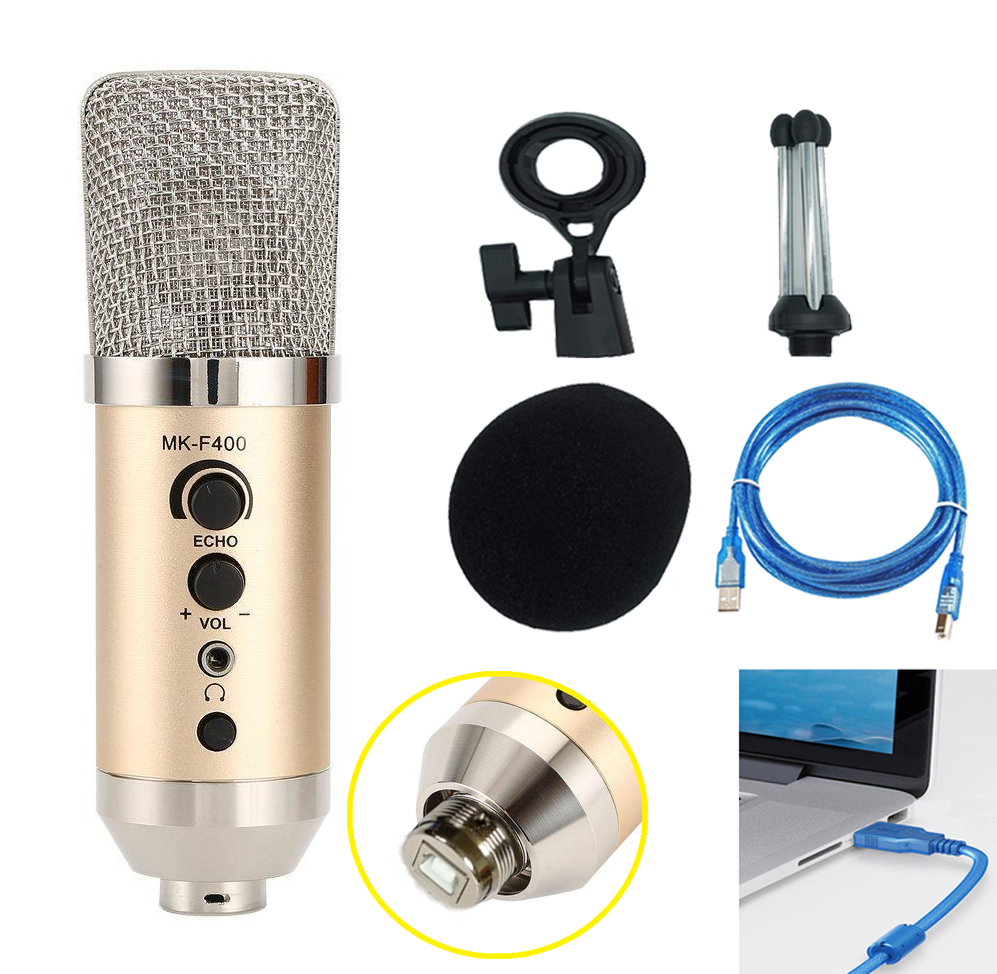 - Vẫn nhưng thông số như âm lượng, độ vang được tùy chỉnh ngay trên thân mic, bạn hoàn toàn có thể hát hay mà không cần thêm bất cứ 1 chiếc Soundcard rời nào cả MK-F400USB micro có thể điều chỉnh giảm âm lượng Echo bù âm thanh KTV Thích hợp cho các đài phát thanh, phòng thu âm, ghi âm tại nhà, chơi game và trò chuyện video Đáp ứng tần số tùy chỉnh 30Hz-20kHz cho âm thanh rõ ràng và độ trung thực cao Nam châm Neodymium, không có bến dạng giọng nói, không lặp lại. Các tính năng: (Cắm và chạy) Kết nối trực tiếp với cổng USB 2.0 để ghi nhạc, phát trực tiếp và hơn thế nữa. Nó rất dễ sử dụng trên tất cả các hệ thống máy tính mà không cần bất kỳ phần mềm bổ sung nào. Thông số kỹ thuật: Tụ điện Mức tối đa: 120 db S.P.L Tỷ lệ tín hiệu / nhiễu: 70 decibel Độ nhạy: 25 mv / Pa (-32 db ± 2 db) Chức năng nhập từ: +1 dB + 25 dB (có thể điều chỉnh mức tăng) Cắm cáp USB Nguồn: USB DC5V Bộ sản phẩm bao gồm: 01 Microphone MK-F400USB 01 Chân đê 01 Kẹp micro 01 Cáp nguồn USB 01 Bông lọc 01 Sách hướng dẫn