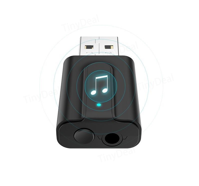 Thông số kỹ thuật sản phẩm: Loại: Bộ chuyển đổi âm thanh Bluetooth Phiên bản Bluetooth: 5.0 Điện áp đầu vào: DC5V Giao diện đầu vào: 3,5mm Giao diện: USB Khoảng cách tín hiệu truyền: