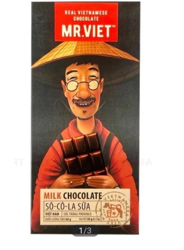 - Socola sữa Mr Viet 60g - Mr Viet Milk Chocolate 60g - Xuất xứ: Việt Nam - HSD: 1 năm - - Mr Việt được làm từ hỗn hợp hạt cacao được tuyển chọn đặc biệt từ miền Nam Việt Nam, nơi nổi tiếng vì hương vị đậm đà của các loại trái cây. Quê hương là tỉnh Sóc Trăng đầy nắng, với khí hậu ấm áp và những điều kiện đặc thù hoàn toàn phù hợp với cây cacao. Với tình yêu thương cao cả, những người nông dân địa phương đã thổi hồn vào những thanh socola mang đậm hương vị Việt Nam.