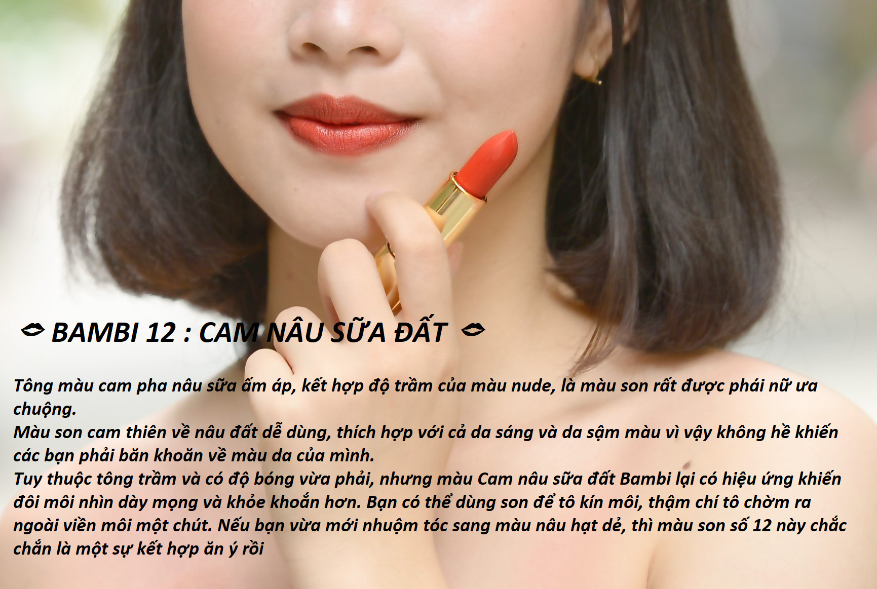 Ghi chú: Màu son quết tay và màu son khi lên môi sẽ lệch nhau một chút do pH của tay và của môi khác nhau. Màu son khi lên môi bạn rất có thể khác một chút so với ảnh chụp người mẫu của Bimore, đó là do màu môi đặc trưng của mỗi người: có người môi đậm, môi thâm, có người môi nhạt, có người môi hồng tự nhiên... Và do pH môi của mỗi người khác nhau nên sẽ lên các tone son không hoàn toàn giống nhau dù bôi cùng 1 thỏi. Đó còn chưa kể do chế độ màn hình điện thoại, máy tính của bạn nữa... Các bạn hãy hiểu những nguyên lý đó để chọn màu son riêng cho mình nhé.