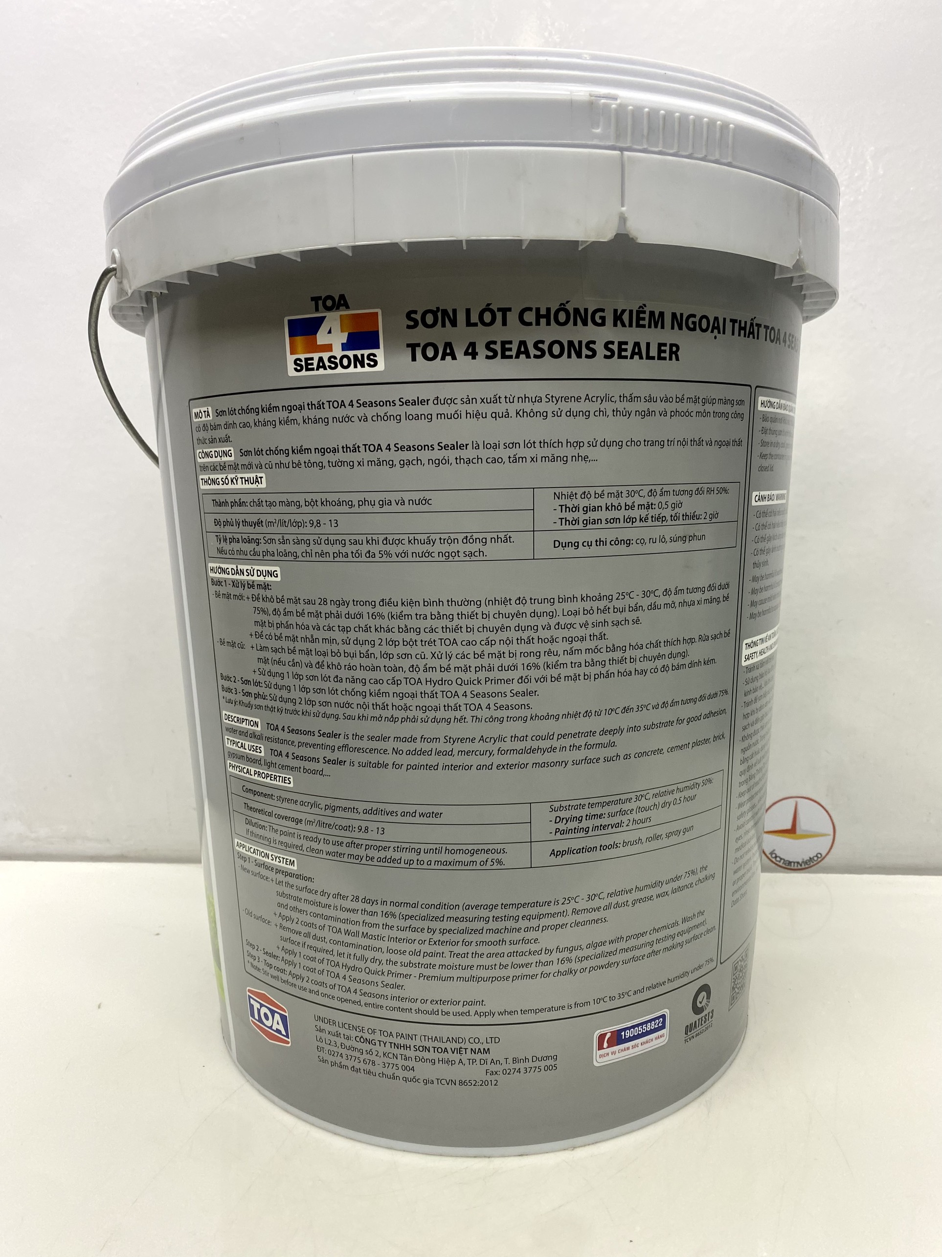 - Chống loang muối hiệu quả MỤC ĐÍCH SỬ DỤNG: Sơn lót chống kiềm ngoại thất TOA 4 Seasons Sealer là sơn lót chống kiềm dùng ngoài nhà, thích hợp cho bề mặt cũ và mới như bê tông, tường xi măng, gạch ngói, v.v… ĐẶC TÍNH SẢN PHẨM: