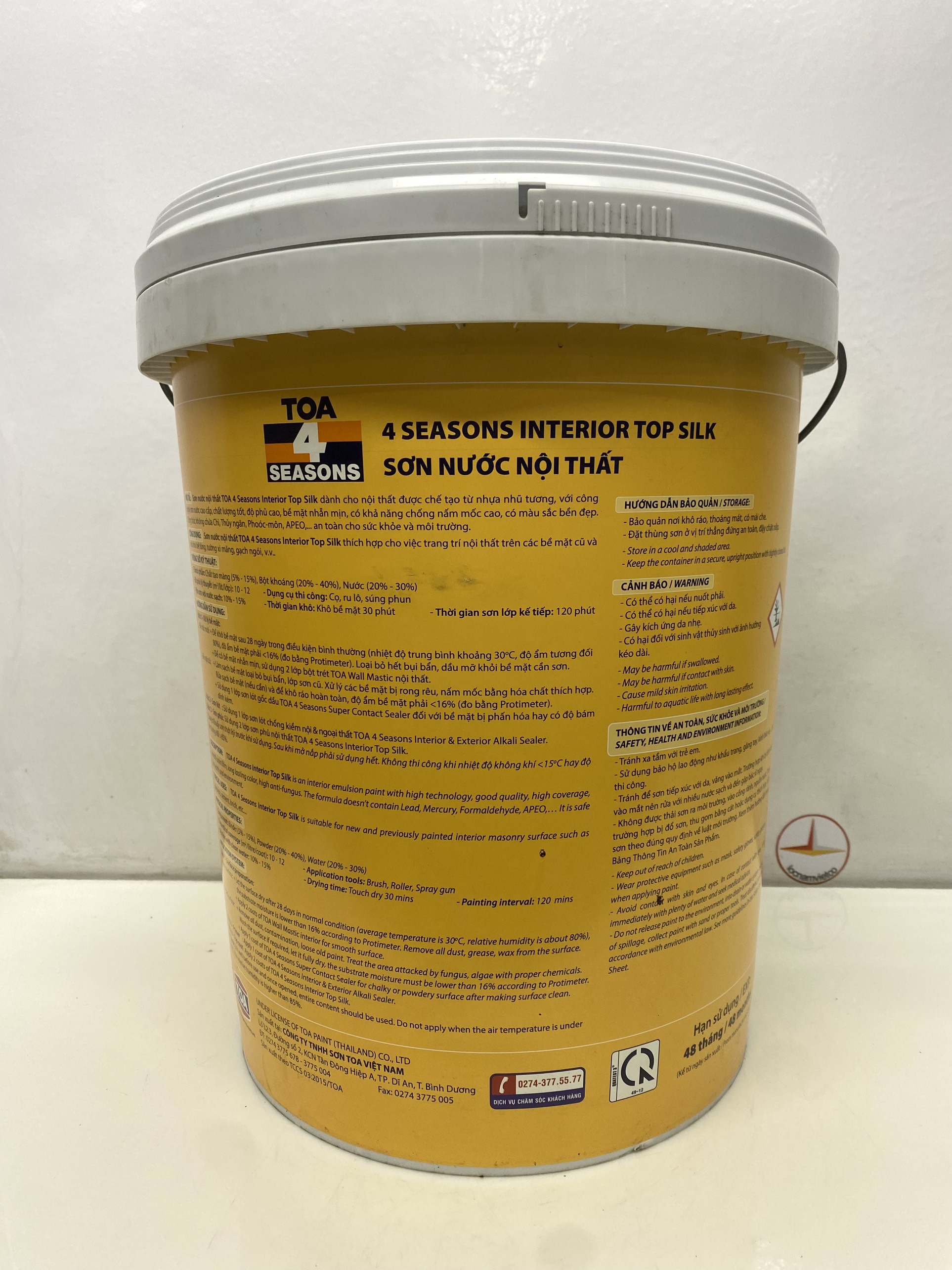 Sơn nước Toa 4 Season Top Silk dễ lau chùi nội thất màu vàng 7923 _18L Sơn Nước nội thất Toa 4 Season top silk dễ lau chùi được chế tạo từ nhựa nhũ tương,