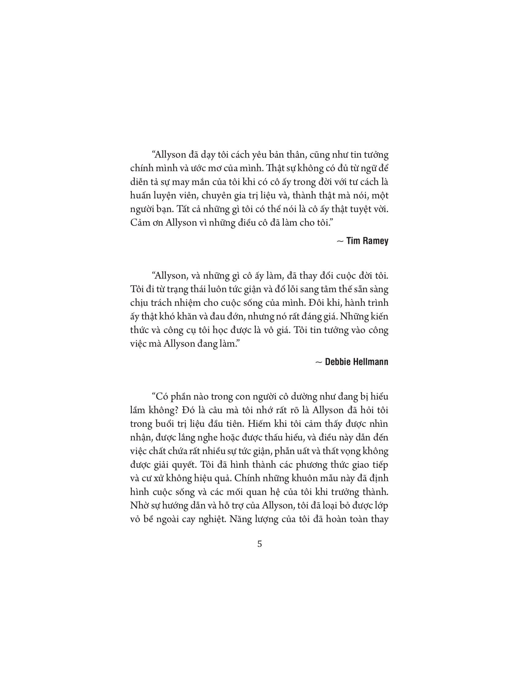 Cuốn sách là món quà tri thức, sự thấu hiểu và các công cụ để giúp bạn chịu trách nhiệm hoàn toàn cho cuộc sống của m.ình. Cuốn sách là một hành trình nội tâm của công cuộc khám phá bản thân, sự trung thực và trách nhiệm cá nhân, để soi sáng những góc sâu kín nhất của cảm xúc, suy nghĩ, niềm tin, nhu cầu, thói quen, và khuôn mẫu hành động của bạn.