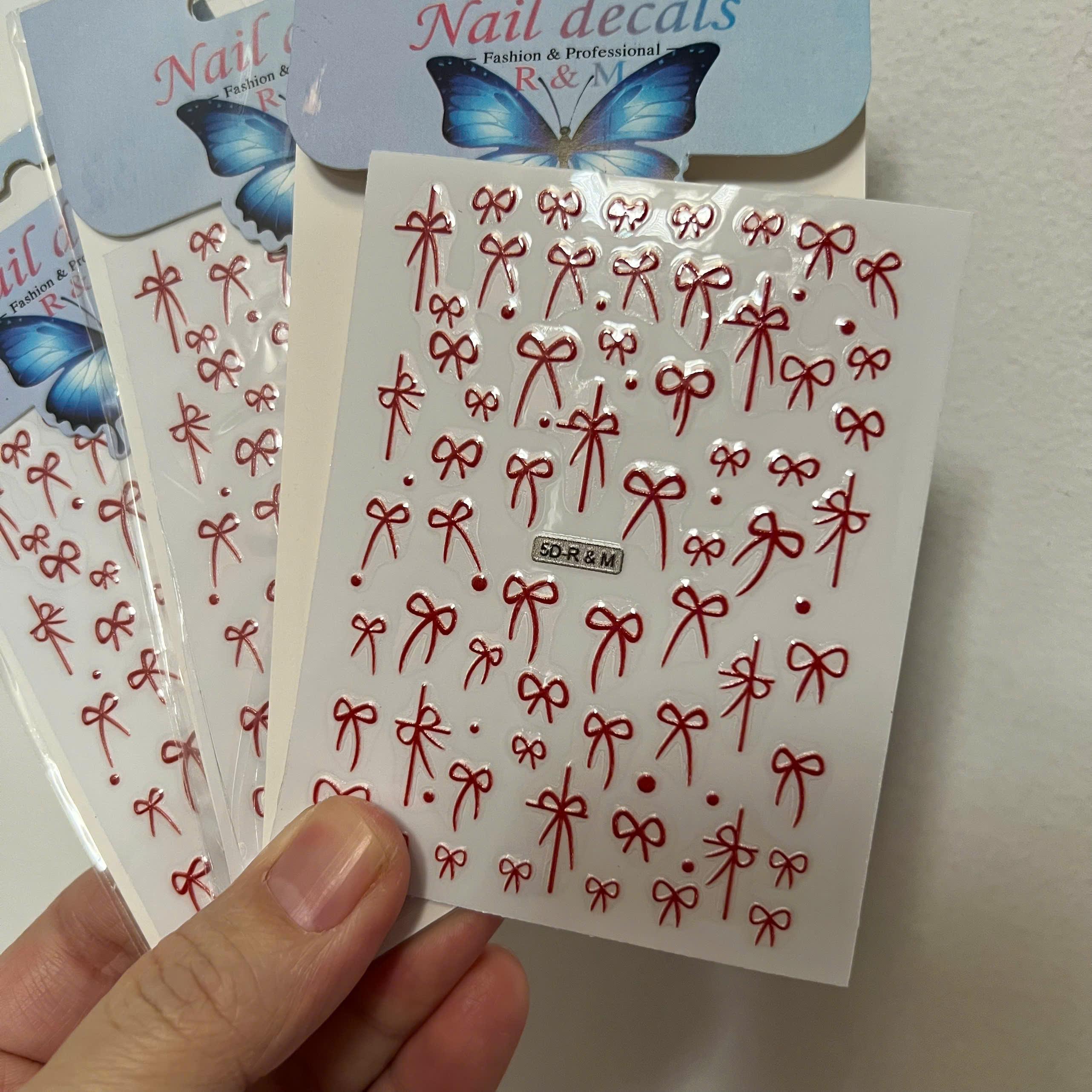 ✨Sticker 5D Dán Móng Hình Nơ Đỏ RM Keo Tự Dính, Hình Dán Móng Nơ Lụa Nơ Đen Trắng Mix Nổi R7M Dạng Nổi Làm Nail Cao Cấp Nữ Women