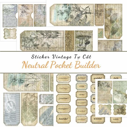 ✨Sticker tự cắt Neutral Pocket Builder - sticker sheet dán, trang trí sổ nhật kí, sổ tay | Bullet journal - kc002