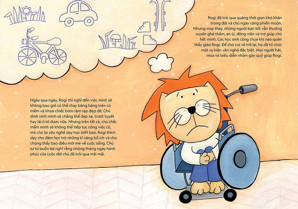 Chuyện về sư tử Rogi là câu chuyện về một chú sư tử phi thường. Bộ sách tranh phác họa những khó khăn trong cuộc sống mà người khuyết tật thường gặp phải và nâng cao nhận thức cộng đồng về việc tháo gỡ những vấn đề này.