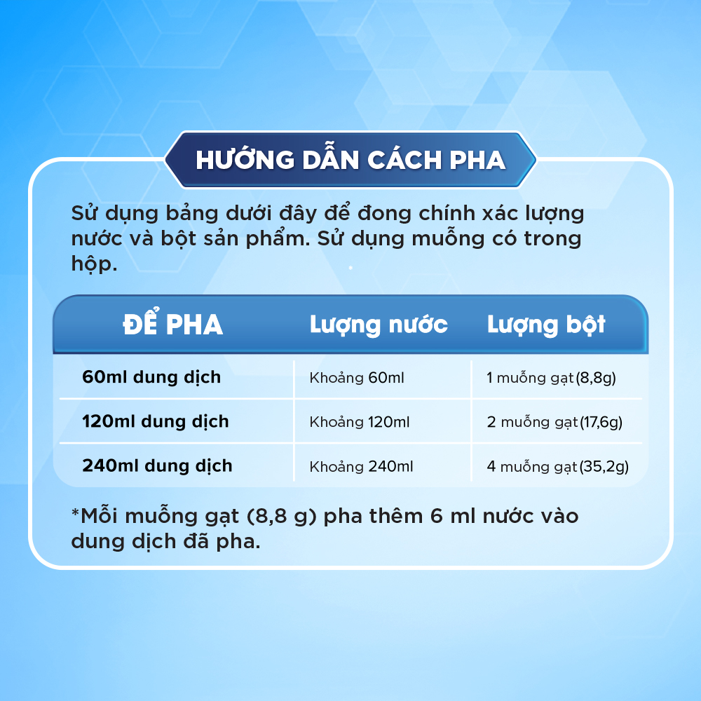 - Vệ sinh, chuẩn bị dụng cụ, pha chế, sử dụng và bảo quản đúng cách rất quan trọng trong quá trình pha chế cho trẻ. Sản phẩm không vô trùng và không nên dùng cho trẻ sinh non hoặc trẻ nhỏ có vấn đề về miễn dịch trừ khi có chỉ định và có sự giám sát của bác sĩ. Nên hỏi ý kiến bác sĩ để biết loại sản phẩm phù hợp với con bạn.