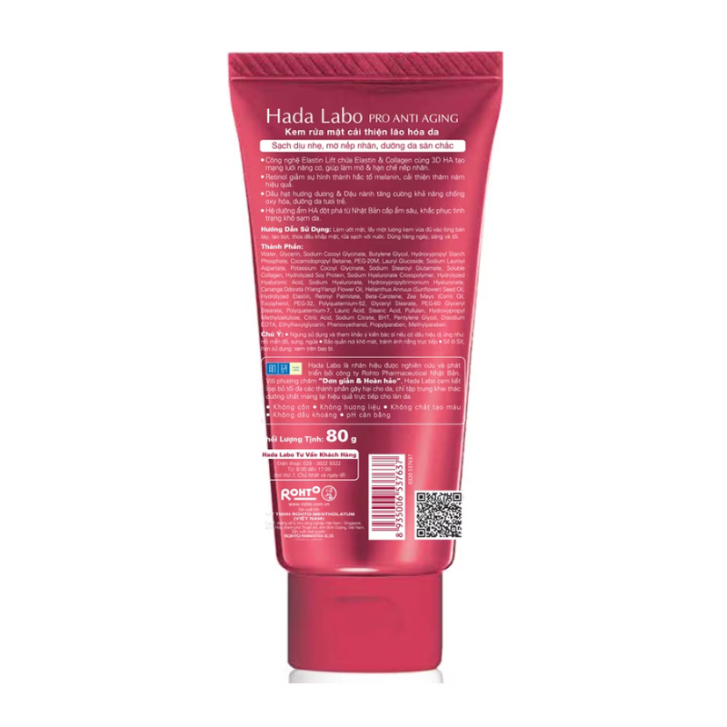- Sữa rửa mặt cải thiện lão hóa Hada Labo với bọt kem mềm mịn chứa thành phần làm sạch có nguồn gốc tự nhiên lấy sạch bụi bẩn, bã nhờn trong lỗ chân lông và tế bào chết trên da