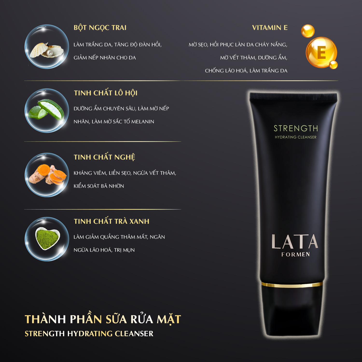 THÀNH PHẦN CHÍNH Sữa Rửa Mặt Cấp Ẩm, dưỡng da cho nam LaTa ForMen: