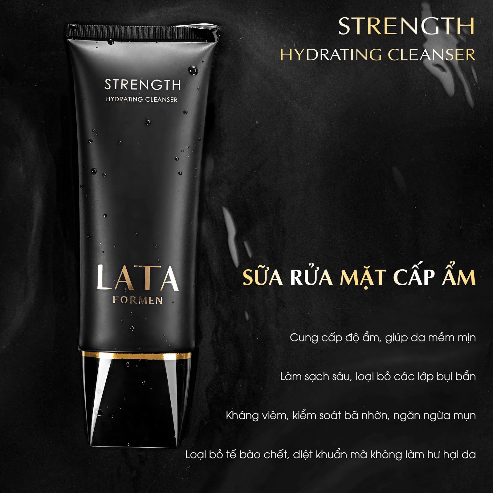 Sữa Rửa Mặt Cấp Ẩm, dưỡng da cho nam LaTa ForMen Hydrating Cleanser với các hạt massage và bọt mịn giúp làm sạch tế bào chết, bụi bẩn và bã nhờn; mang lại làn da sạch mịn, kháng khuẩn, bảo vệ và dưỡng da trắng sáng giúp cho phái mạnh tự tin và sảng khoái suốt cả ngày.