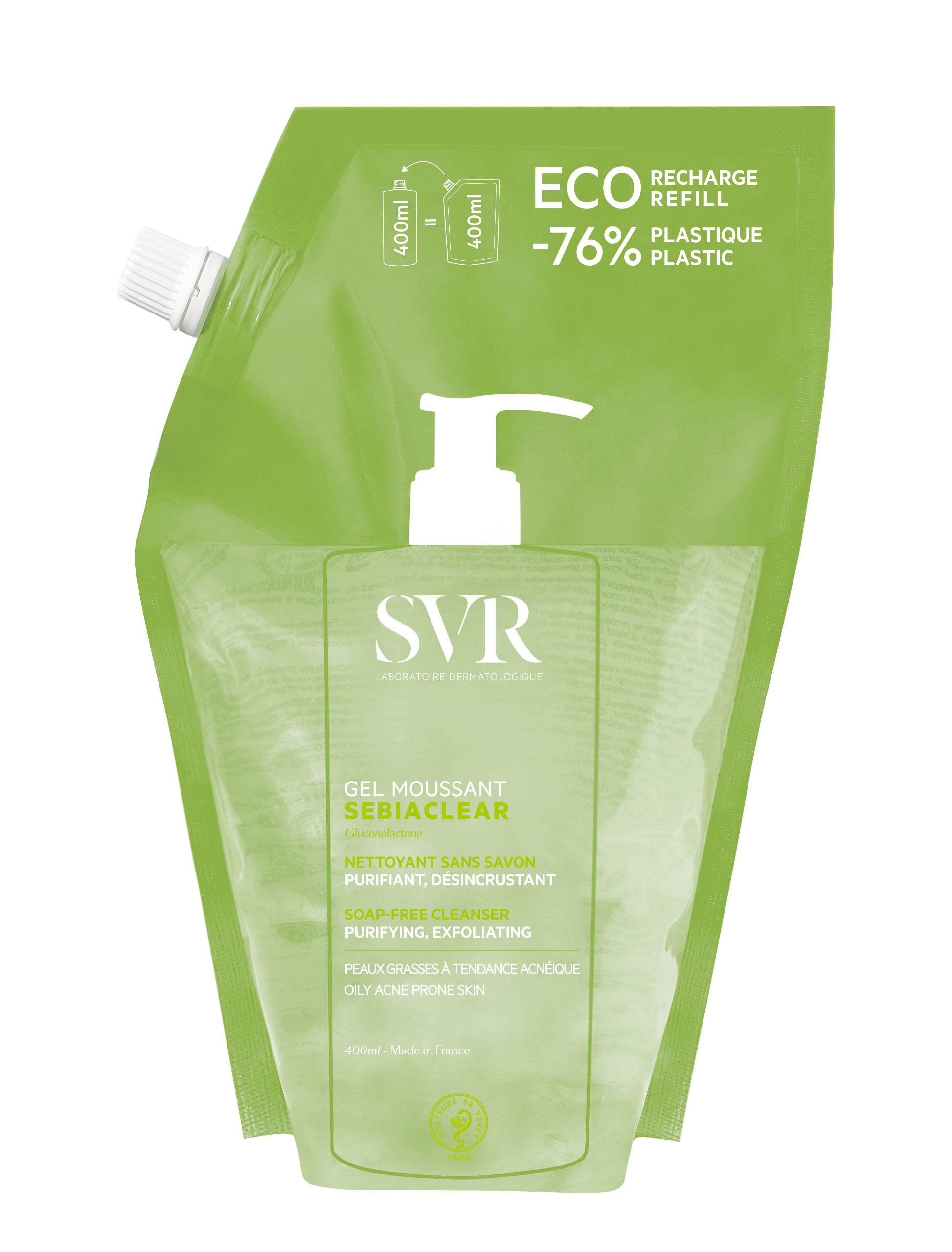 ✨Sữa rửa mặt dạng gel không chứa xà phòng dành cho da nhờn mụn SVR Sebiaclear Gel Moussant 400ml (Túi)
