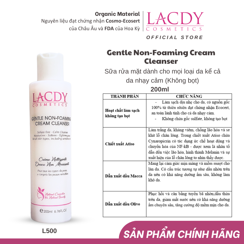 ✨Sữa rửa mặt dành cho mọi loại da kể cả da nhạy cảm (không bọt) - L500 GENTLE NON-FOAMING CREAM CLEANSER 200ml