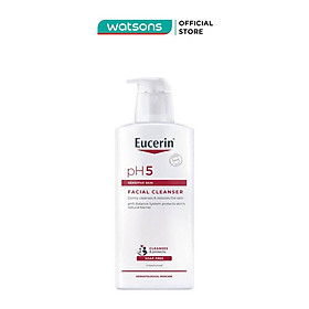 - Sữa Rửa Mặt Eucerin Dành Cho Da Nhạy Cảm pH5 Facial Cleanser 400ml nhẹ nhàng làm sạch làn da nhạy cảm, loại bỏ bụi bẩn, bã nhờn và tế bào chết.