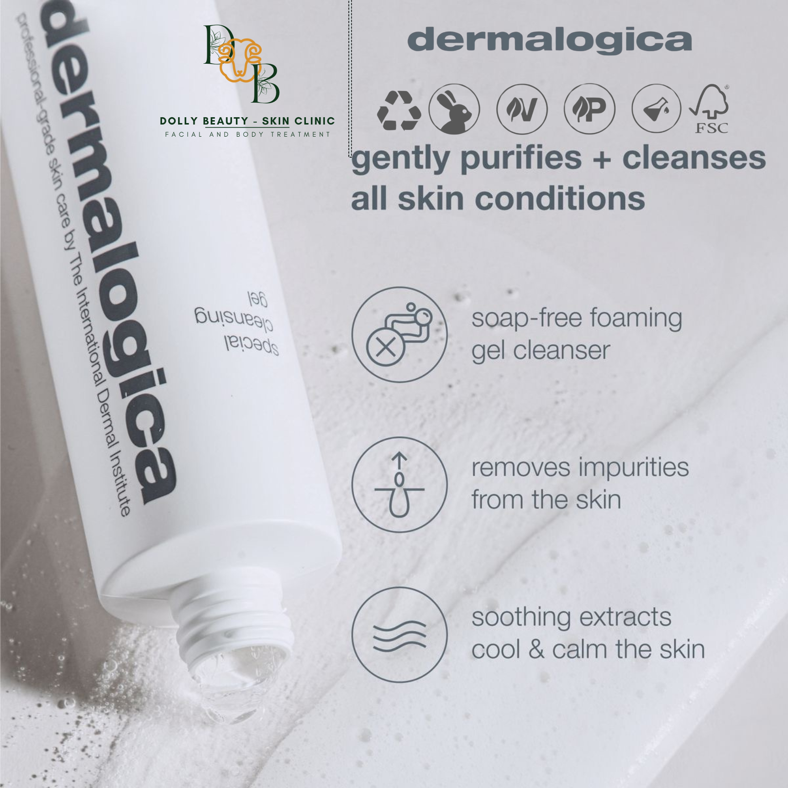 Gel tạo bọt, không chứa xà phòng giúp làm sạch cho tất cả các tình trạng da. Hiệu ứng bọt tươi mát giúp làm sạch hoàn toàn các tạp chất mà không làm ảnh hưởng đến cân bằng độ ẩm tự nhiên của da. Sữa rửa mặt phổ biến toàn thế giới với thành phần Quillaja Saponaria tạo bọt tự nhiên, nhẹ nhàng rửa sạch độc tố và cặn bẩn để mang lại làn da mịn màng và sạch sẽ. Trọng lượng nhẹ và vừa đủ để sử dụng hàng ngày, sản phẩm cũng có chiết xuất từ Bạc Hà và Oải Hương giúp làm dịu da.