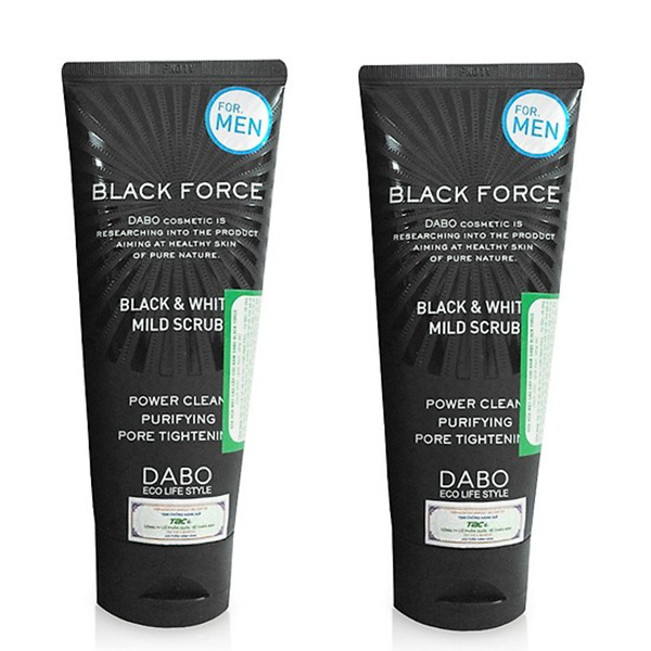 Sữa rửa mặt dành cho nam Dabo Black Force Black & White Mild Scrub với công thức độc đáo kết hợp giữa than hoạt tính, bùn khoáng, chiết xuất ngũ cốc, trái cây và tinh chất trà xanh giúp làm sạch da, giảm thiểu bã nhờn, bụi bẩn trên bề mặt da và tận sâu trong lỗ chân lông, ngăn ngừa mụn hiệu quả. Đồng thời, sản phẩm còn có khả năng cải thiện tông màu da, làm chậm quá trình lão hóa và giảm bỏng rát, kích ứng khi cạo râu.