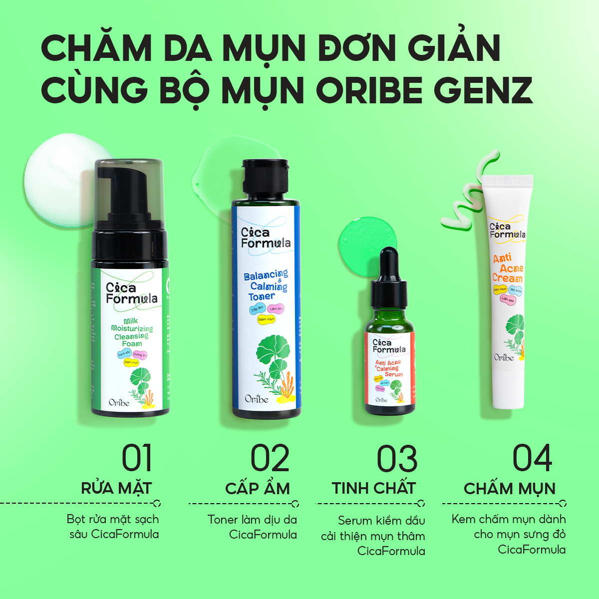 ✨Sữa rửa mặt rau má tạo bọt Oribe Cica Formula làm sạch sâu dưỡng ẩm cho da mụn da dầu nhạy cảm 120ml