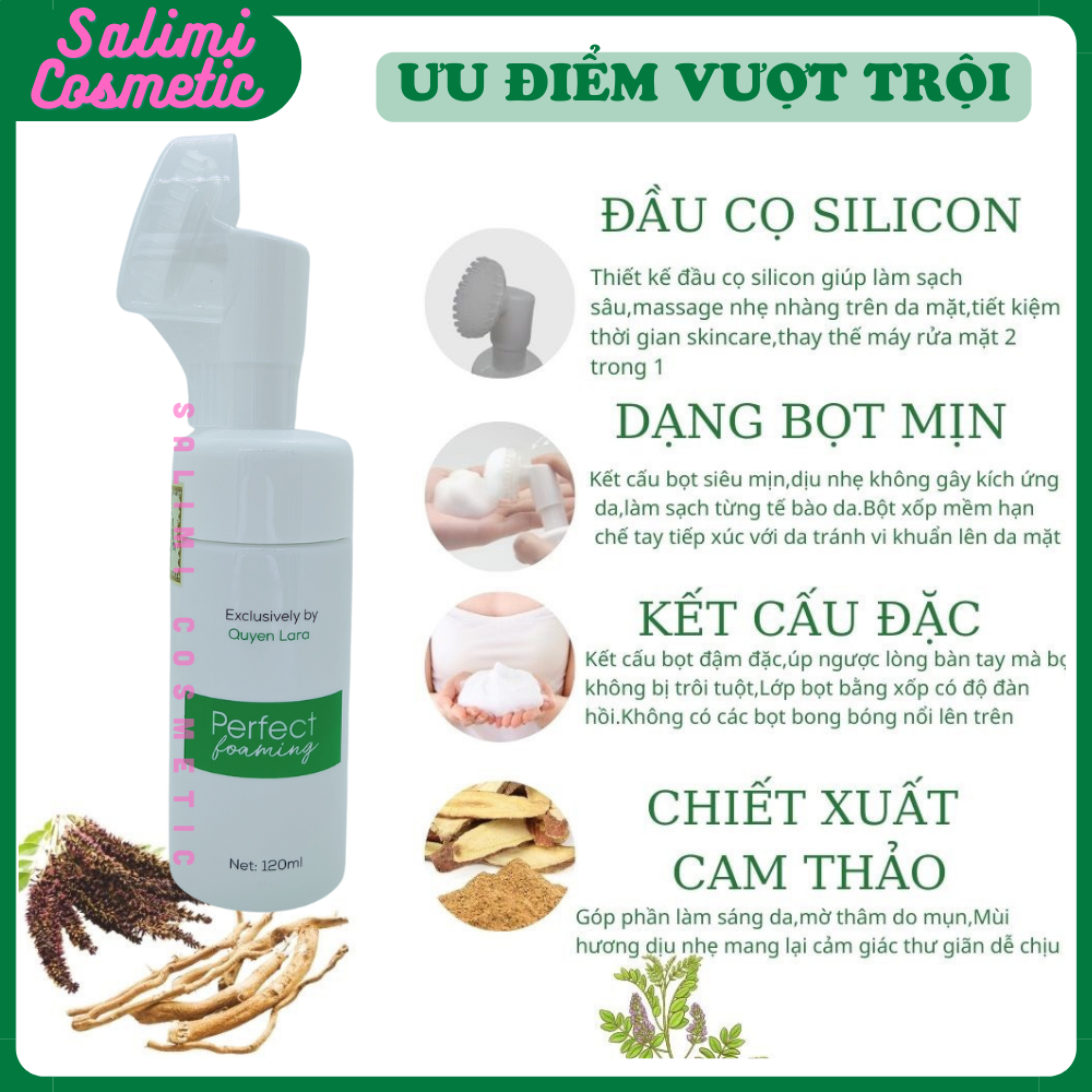 ✨Sữa Rửa Mặt Sạch Mụn PERFECT FOAMING 120ml, Làm Sạch Sâu, Có Đầu Cọ Massage Tạo Bọt, Trắng Hồng, Đào Thải Độc Tố