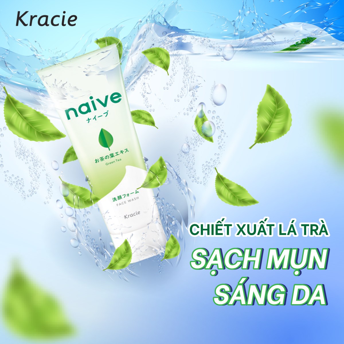 ✨Sữa Rửa Mặt Sạch Sâu Chiết Xuất Lá Trà Xanh Kracie Naive Face Wash (Green Tea) - Tuýp 130G