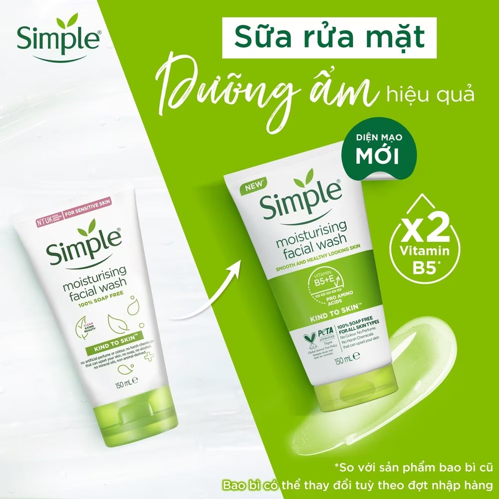Mua tại TiktokSữa Rửa Mặt Simple Dưỡng Ẩm 150ml Sữa Rửa Mặt Simple Dưỡng Ẩm 150ml 100% không chứa xà bông nhẹ nhàng rửa sạch lớp trang điểm và tạp chất, cho làn da mềm mịn mơn mởn sức sống. Sữa Rửa Mặt Simple không chứa phẩm màu hay thuốc nhuộm, không chứa hương liệu nhân tạo hay hóa chất gay gắt có thể gây kích ứng da. Thành phần chính và công dụng:
