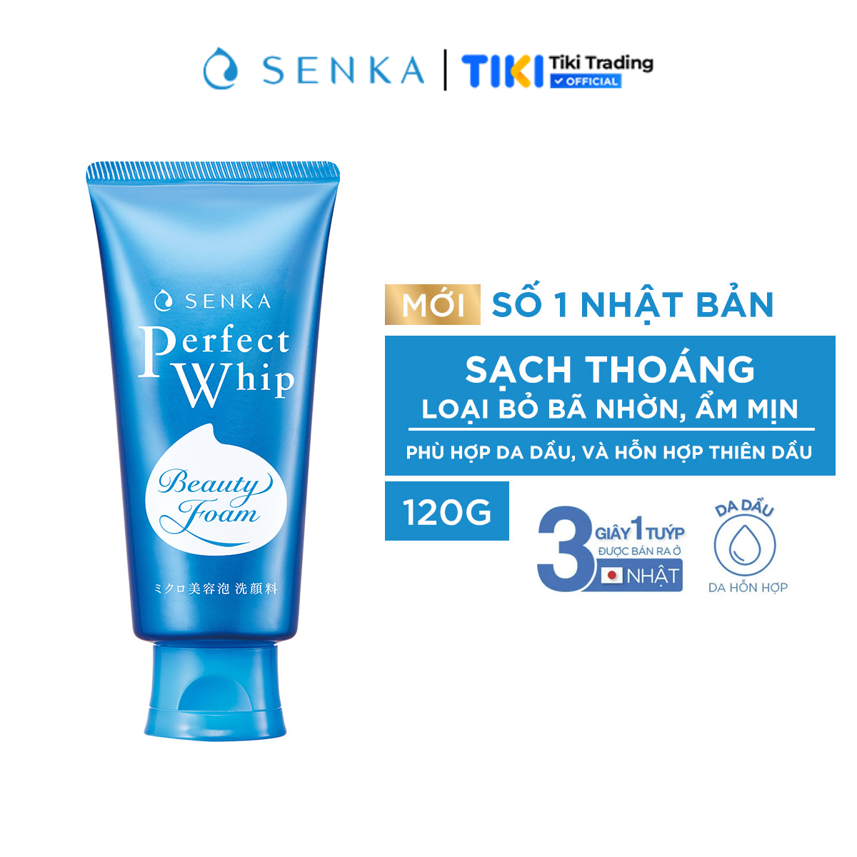 Sữa Rửa Mặt SenKa Tạo Bọt Chiết Xuất Tơ Tằm Trắng Senka Perfect Whip 120g