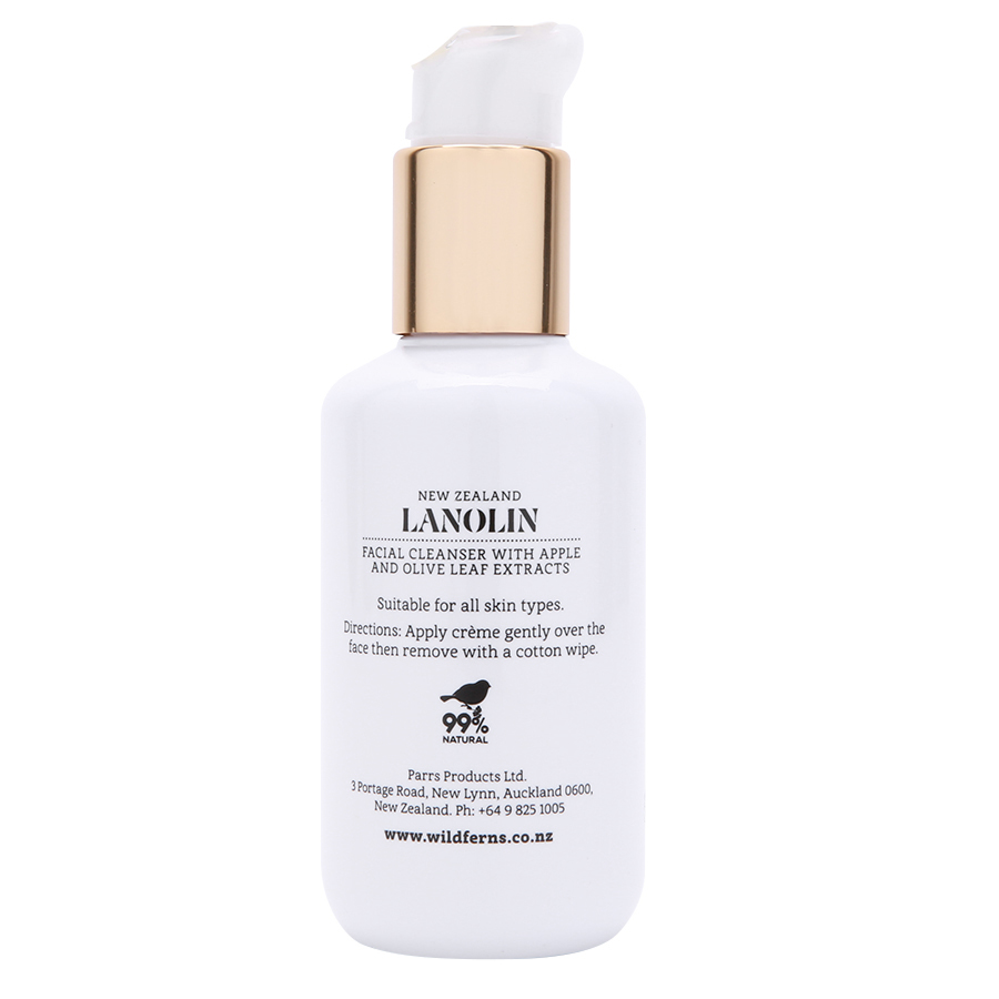 Sữa Rửa Mặt Tạo Bọt Lanolin Táo Và Dầu Ôliu Wild Ferns là một hỗn hợp của Lanolin dưỡng ẩm sâu và các thành phần làm sạch da với nhiệm vụ đẩy hết mọi bụi bẩn và các tạp chất từ sâu bên trong lỗ chân lông ra khỏi bề mặt da.