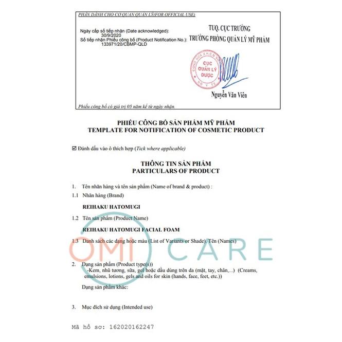 Sữa rửa mặt Hatomugi chiết xuất ý dĩ dưỡng ẩm trắng da Reihaku Cleansing Facial Foam Nhật Bản