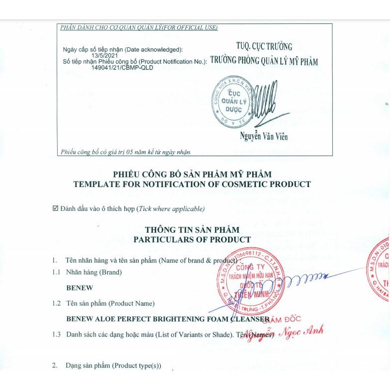 Mua tại TiktokSữa rửa mặt trắng da da Lô Hội - Benew Aloe Brightening 160ml (Sạch nhờn, Dưỡng ẩm, Se khít lỗ chân lông) CAM KẾT HÀNG CHÍNH HÃNG CÔNG TY 100%