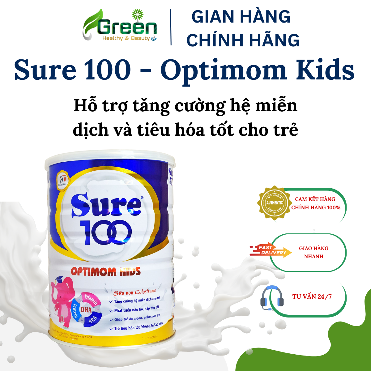 Sure 100 Kids Gold - Sản phẩm dinh dưỡng vượt trội cho Bé Sure 100 Kids Gold được pha chế từ sữa bột cao cấp là sản phẩm đặc chế dành cho Trẻ từ 06