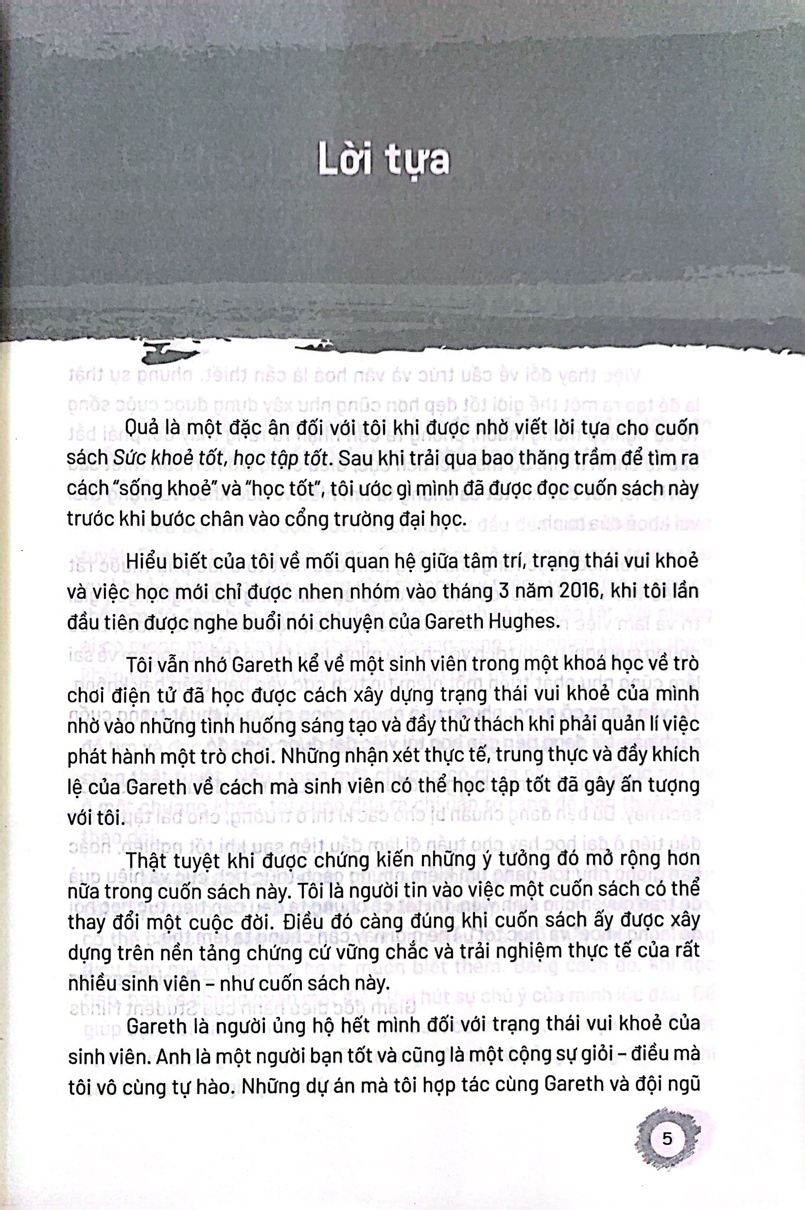"Sức khỏe tốt, học tập tốt" là một bộ công cụ tuyệt vời cho việc định hướng tại đại học được gói ghém cũng những ý tưởng hữu ích và thực tế giúp sinh viên chăm sóc sức khỏe tâm thần của mình và học tập hiệu quả hơn. Cuốn sách bao gồm một loạt nghiên cứu thực tế và chiến lược về trạng thái bui khỏe, nhờ vậy mà nó phù hợp với các sinh viên cũng như các nhân viên làm công tác hỗ trợ sinh viên.