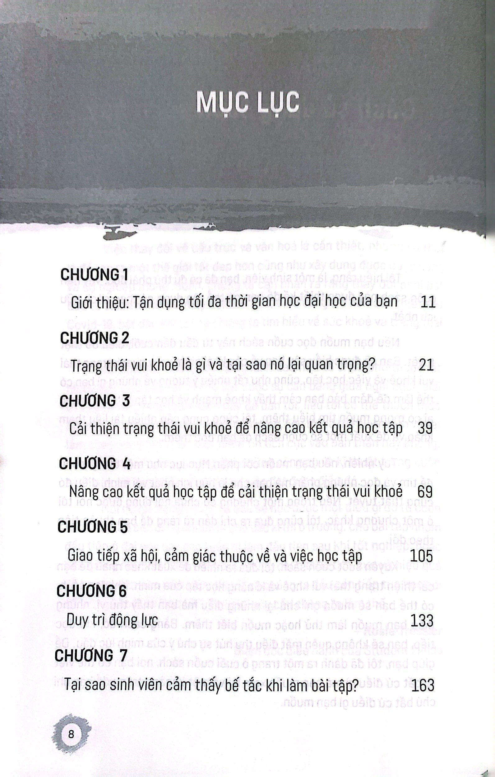 Ta đều có nhận thức về mối quan hệ giữa trạng thái vui vẻ và việc học, nhưng chưa bao giờ nghĩ về nó hoặc ưu tiên nó. Bởi vậy, ta có khả năng sa vào những hành vi và thói quen xấu, khiến ta học được ít hơn, từ đó cảm thấy bớt hứng thú hơn với quãng thời gian làm sinh viên.
