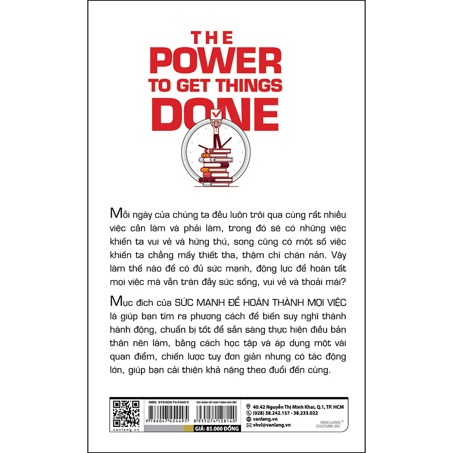 Mỗi ngày của chúng ta đều luôn trôi qua cùng rất nhiều việc cần làm và phải làm, trong đó sẽ có những việc khiến ta vui vẻ và hứng thú, song cũng có một số việc khiến ta chẳng mấy thiết tha, thậm chí chán nản. Vậy làm thế nào để có đủ sức mạnh, động lực để hoàn tất mọi việc mà vẫn tràn đầy sức sống, vui vẻ và thoải mái? Mục đích của SỨC MẠNH ĐỂ HOÀN THÀNH MỌI VIỆC là giúp bạn tìm ra phương cách để biến suy nghĩ thành hành động, chuẩn bị tốt để sẵn sàng thực hiện điều bản thân nên làm, bằng cách học tập và áp dụng một vài quan điểm, chiến lược tuy đơn giản nhưng có tác động lớn, giúp bạn cải thiện khả năng theo đuổi đến cùng.