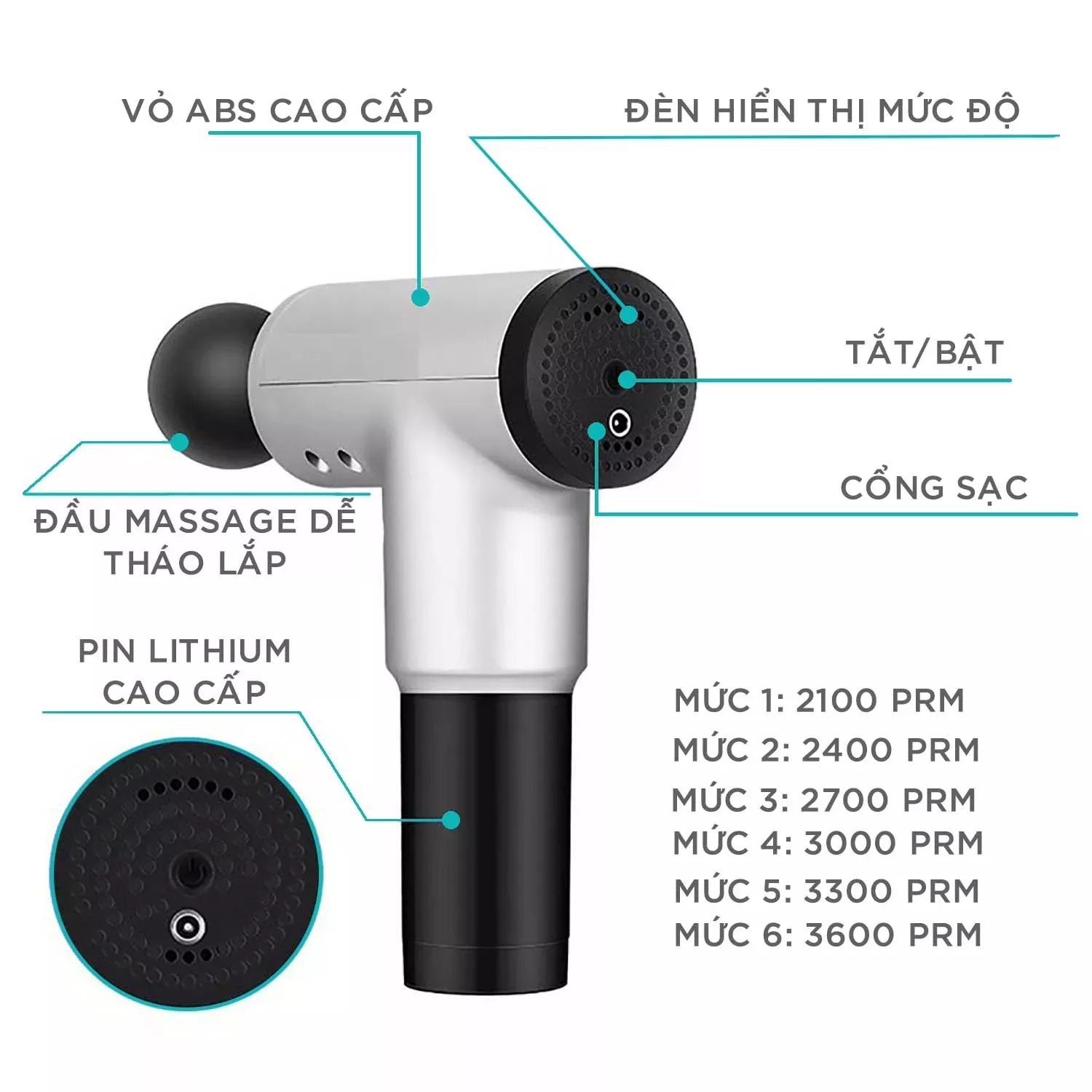 ✨Súng Massage Cầm Tay Fascial Gun KH-320 Thế Hệ Mới 6 Cấp Độ Hỗ Trợ Mát Xa Chuyên Sâu, Giảm Đau Cơ, Cứng Khớp