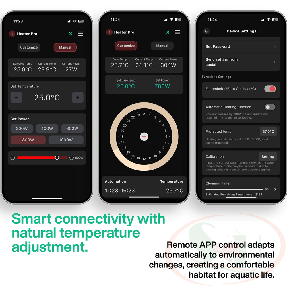 Chihiros Heater Pro theo dõi thời gian thực và tự động chuyển chế độ cao / thấp để tiết kiệm năng lượng. Tích hợp tính năng bảo vệ quá nhiệt, chống chạy khô và tự động tắt nếu phát hiện mực nước ít, đảm bảo an toàn cho cả hệ thống.