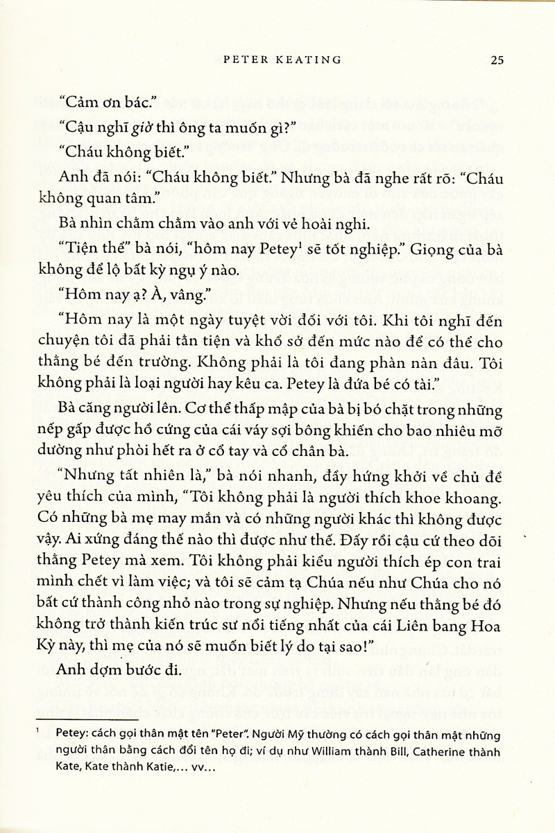 Bản chất của con người - và của bất cứ sinh vật nào - không phải là đầu hàng, hoặc phỉ nhổ và nguyền rủa sự tồn tại của mình; điều ấy thực ra đòi hỏi cả một quá trình suy đồi mà tốc độ của nó tuỳ thuộc mỗi người. Một vài người đầu hàng vào lần đầu tiên tiếp xúc với áp lực; một vài người mặc nhiên đầu hàng; một số khác đi xuống từ từ và cứ thế mất dần ngọn lửa mà chính họ cũng không hề nhận ra nó đã tàn lụi như thế nào. Sau đó, tất cả biến mất trong cái đầm lầy khổng lồ gồm những người già cỗi, những người rao giảng rằng trưởng thành bao hàm việc chối bỏ chính kiến, rằng sự ổn định bao hàm việc chối bỏ những giá trị riêng, và rằng sống thực tế có nghĩa là phải gạt bỏ sự tồn tại. Chỉ một số ít người kiên quyết không đầu hàng và tiếp tục tiến lên; họ biết rằng không thể phản bội ngọn lửa kia; họ học cách nuôi dưỡng nó, cho nó hình hài, mục đích và sự số Tóm lại, dù tương lai mỗi người khác nhau, ở vào thời điểm bắt đầu cuộc sống, nhân loại luôn tìm kiếm một hình ảnh cao cả về bản chất con người cũng như về cuộc sống.