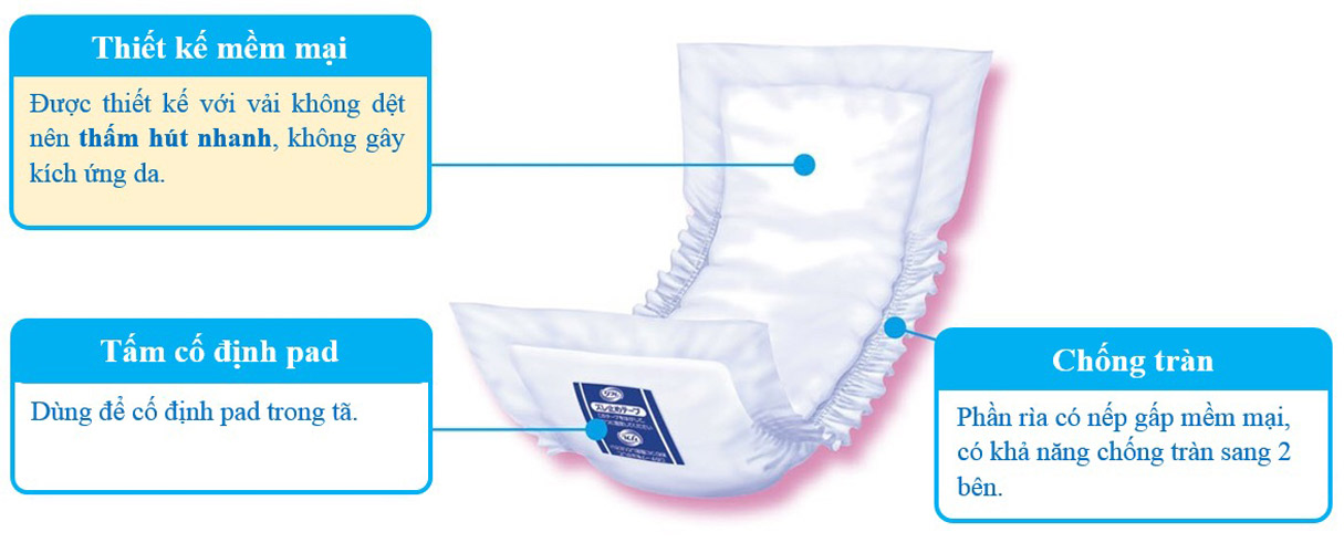 - Chất liệu mềm mượt, khả năng thấm hút tốt, có vách kép chống tràn.