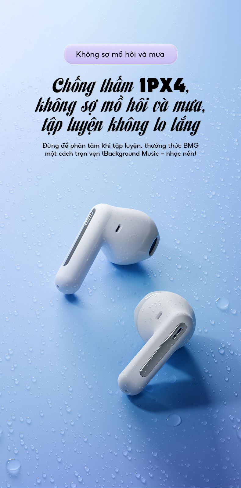 Chống thấm ipx4, không sợ mồ hôi và mưa, tập luyện không lo lắng