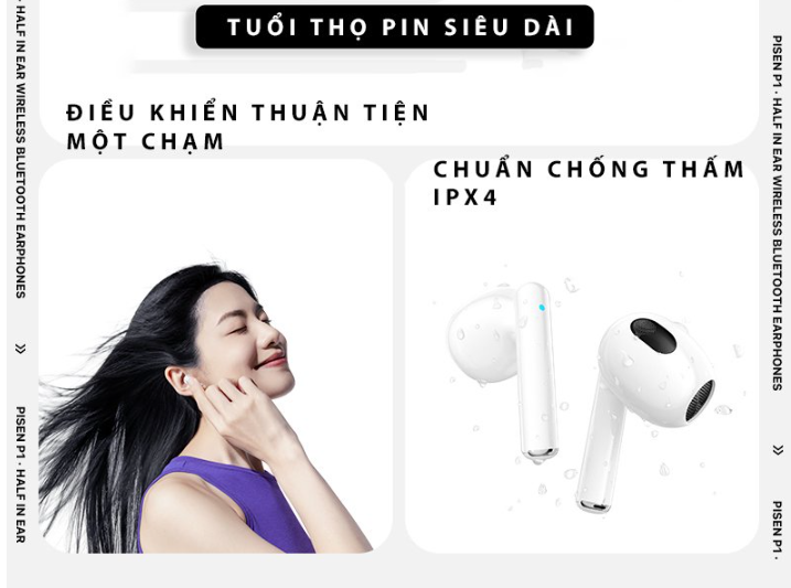 TAI NGHE KHÔNG DÂY QUỐC DÂN - PISEN BUDS P1 Hoàn toàn không dây, nhẹ như bông Công nghệ Bluetooth 5.3 nhanh hơn gấp đôi so với phiên bản Bluetooth 4.2. Năng suất cũng tăng lên