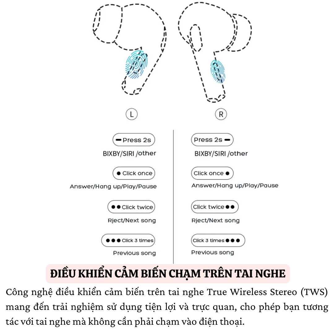 Đặc trưng: - Chip bluetooth 5.0 thế hệ mới, tiêu thụ điện năng thấp, trải nghiệm thời lượng pin mạnh mẽ hơn. - Tai nghe trái phải đều có chức năng tai nghe bluetooth hoàn
