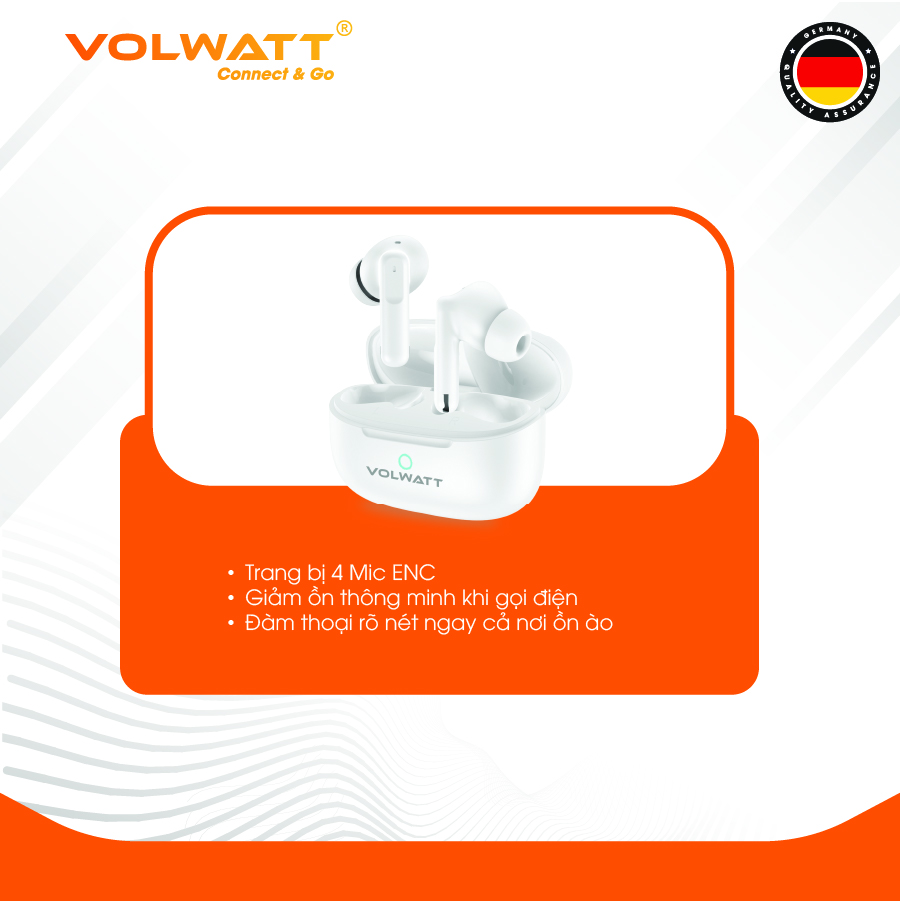 Tai nghe không dây Volwatt Beat – True Wireless Stereo Bluetooth 5.4 Volwatt Beat mang đến trải nghiệm âm thanh mạnh mẽ, đàm thoại rõ ràng và thời lượng pin dài vượt trội. Với thiết