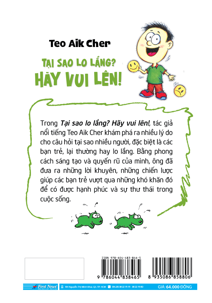Với rất nhiều lời khuyên hữu ích, những trích dẫn và những mẩu chuyện thú vị, Tại sao lo lắng? Hãy vui lên! sẽ dẫn dắt bạn trên con đường vui sống không lo âu. Trong Tại sao lo lắng? Hãy vui lên!, tác giả nổi tiếng Teo Aik Cher khám phá ra nhiều lý do cho câu hỏi tại sao nhiều người, đặc biệt là các bạn trẻ, lại thường hay lo lắng. Bằng phong cách sáng tạo và quyến rũ của mình, ông đã đưa ra những lời khuyên, những chiến lược giúp các bạn trẻ vượt qua những khó khăn đó để có được hạnh phúc và sự thư thái trong cuộc sống.