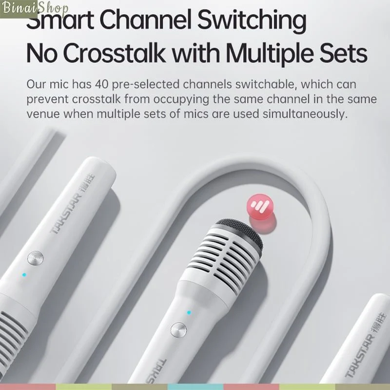 Mua tại Tiktok- Micro Takstar HM-300W là micro cầm tay không dây sử dụng sóng UHF với thiết kế nhỏ gọn, tần số quét rộng, khả năng kết nối nhanh chóng dễ dàng với 40 kênh sóng khác nhau trong pham vi thu hơn 40m, thời gian sử dụng liên tục trong vòng 15 giờ thích hợp cho việc hát karaoke, giảng dạy, hướng dẫn viên... TÍNH NĂNG CƠ BẢN