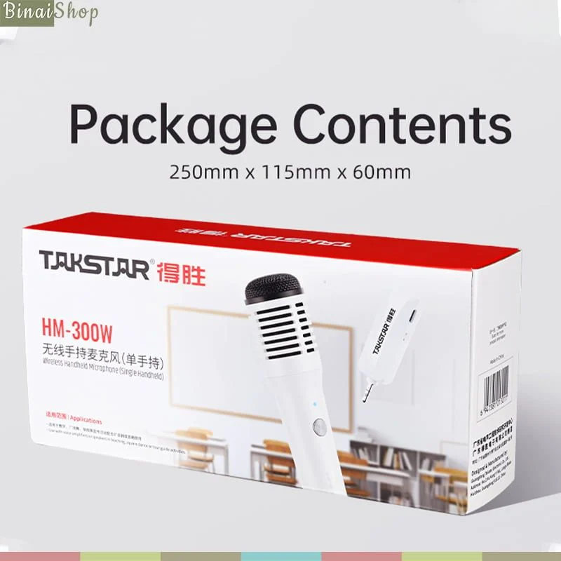 Takstar HM-300W - Micro Cầm Tay UHF, Pham Vi Thu 40m Dùng Cho Hát Karaoke, Giảng Dạy, Hướng Dẫn Viên
