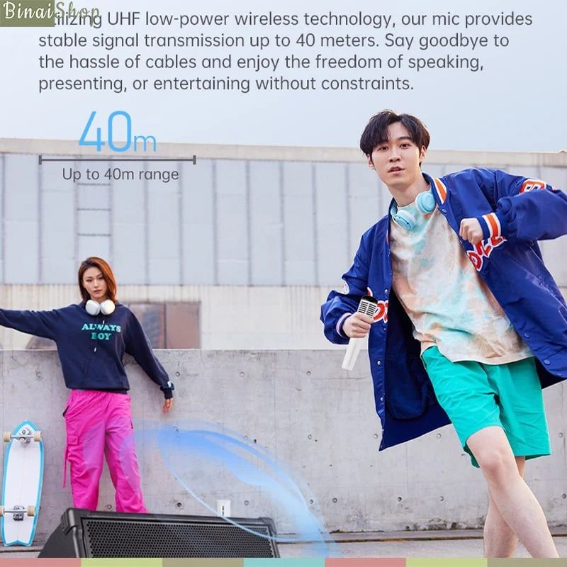 - Sử dụng sóng không dây UHF công suất thấp cho khả năng chống nhiễu mạnh mẽ với khoảng cách truyền dẫn hơn 40m.