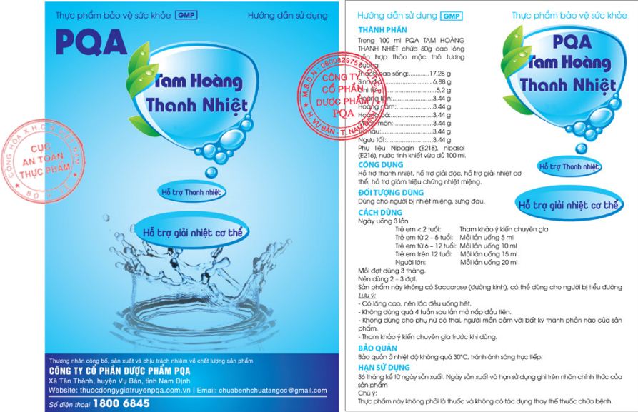 Tam Hoàng Thanh Nhiệt PQA Giúp Giải Độc Cơ Thể Giảm Triệu Chứng Nhiệt Miệng Hộp 10 Ống THÔNG TIN SẢN PHẨM: - Xuất xứ: Việt Nam - Dung tích: Hộp 12 ống - Ngày