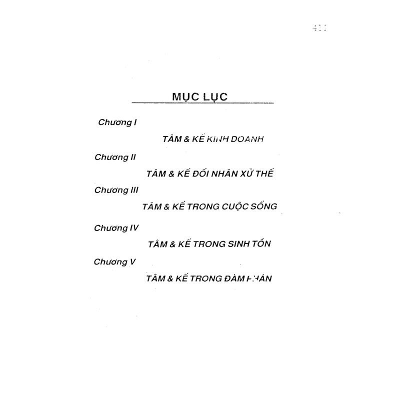 Tâm Và Kế Người Do Thái sẽ cho bạn đọc một bức tranh tổng hợp khắc hoạ diện mạo về người Do Thái, một dân tộc vốn nổi tiếng thế giới qua những kì tích phi thường của mình. Tâm tính người Do Thái rất đa dạng và phức tạp. Cuốn sách này không đi sâu vào lĩnh vực văn hoá, nhưng lại khắc hoạ điển hình những nét văn hoá ứng xử của họ ở 5 phương diện độc đáo: Tâm và Kế. Khái niệm đó phần nào lộ tả nét đặc trưng nhất về trí tuệ nhân sinh của họ. Giới thiệu cuốn sách kinh điển này, nhà xuất bản hy vọng bạn đọc Việt Nam lại có dịp lý giải và rút ra được đôi điều bổ ích về một dân tộc kì lạ này. Người Do Thái cho rằng: “Hạ thấp giá cả chứng tỏ bạn không tin tưởng vào sản phẩm của mình”, “Tuyệt đối không được bán rẻ sản phẩm của chúng ta”. Tâm và kế người do thái đi sâu khắc họa những nét văn hoá ứng xử của người Do Thái ở 5 phương diện độc đáo: Tâm và Kế. Qua cuốn sách, bạn đọc sẽ thấy rõ chân lý yêu quý và coi trọng đồng tiền của người Do Thái. Tuy nhiên, điều làm cả thế giới ngưỡng mộ không phải lượng tiền bạc họ kiếm được mà chính là kho tàng trí tuệ tuyệt vời mà chính dân tộc Do Thái đã tích luỹ.   Cuốn sách dược trình bày theo 5 chương chia sẻ những bí quyết của trí tuệ thông thái của dân tộc ngoan cường này: Chương 1: Tâm và Kế kinh doanh Chương 2: Tâm và Kế đối nhân sử thế Chương 3: Tâm và Kế trong cuộc sống Chương 4: Tâm và Kế trong sinh tồn Chương 5: Tâm và Kế trong đàm phán Tâm & Kế Người Do Thái là kho tàng trí tuệ tuyệt vời mà dân tộc Do thái đã tích lũy. Làm sao một dân tộc lại thông minh như vậy, họ đã phát triển nền kinh tế của mình vượt bậc để toàn thế giới phải ngưỡng mộ.