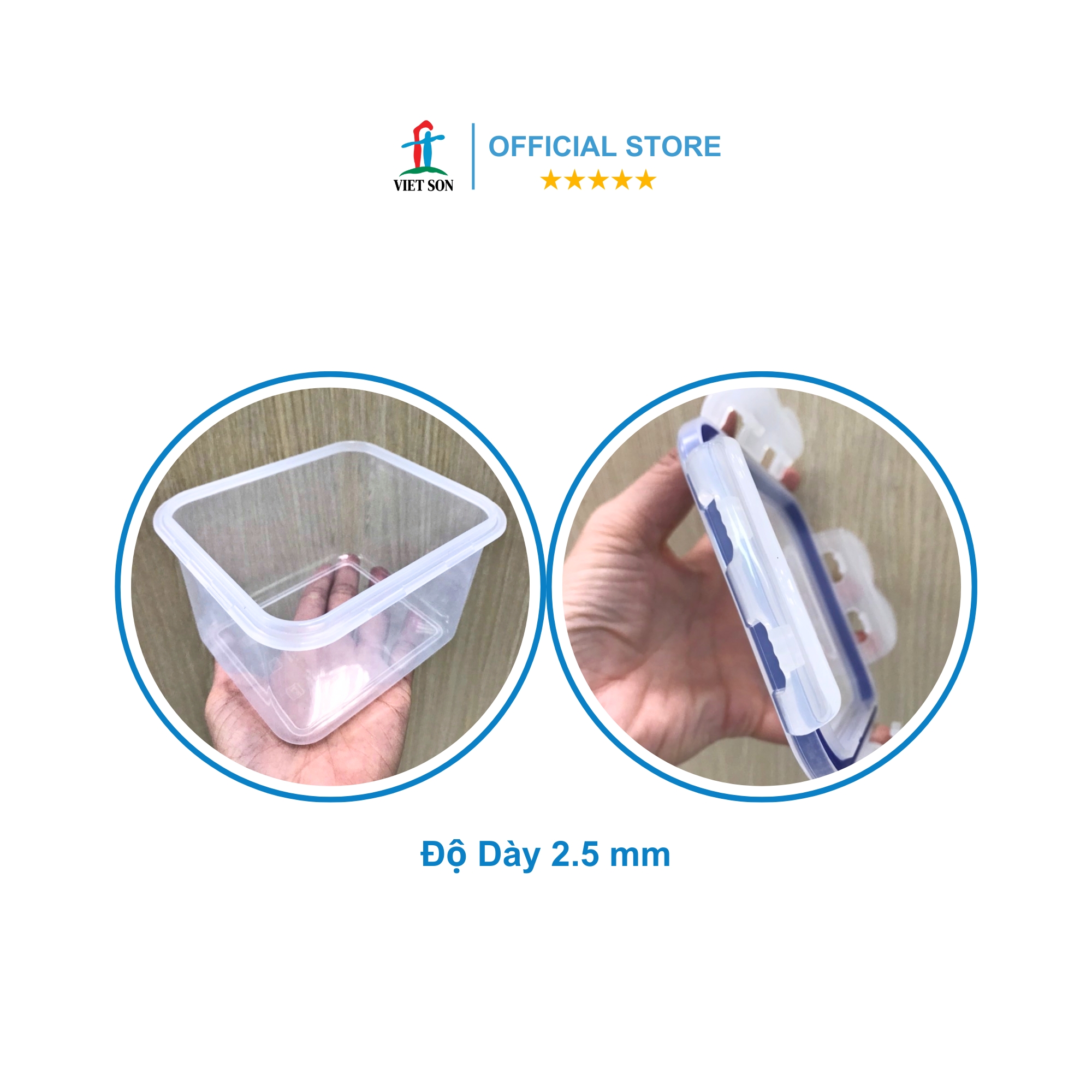 THÔNG SỐ KỸ THUẬT: * Tên sản phẩm: Hộp Nhựa VIETSON Tròn 800ml Đựng Thực Phẩm Kín Hơi * Thương hiệu: VIETSON * Xuất xứ: Việt Nam * Thành Phần: Hạt nhựa PP 94%, Ron Silicon 6%, Ron Silicon không tiếp xúc trực